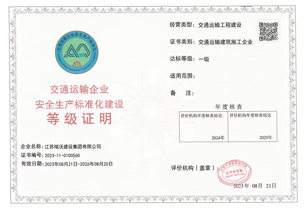 江蘇瑞沃建設(shè)集團(tuán)有限公司成立于2007年,是一家以市政、交通工程建設(shè)為主導(dǎo),集房屋建筑、交通安全設(shè)施、城市道路照明工程、電力工程、隧道工程、航道工程及投融資為一體的綜合性企業(yè)。企業(yè)注冊資本60000萬元,現(xiàn)有各類技術(shù)人員580人,其中中、高級以上人員498人,注冊類人員268人,一、二級建造師166人。公司榮獲“江蘇省建筑業(yè)優(yōu)秀企業(yè)”、“江蘇省五一勞動獎狀”,連續(xù)多年被評為“揚州市先進(jìn)企業(yè)”、“江蘇省建筑業(yè)百強(qiáng)企業(yè)”,連續(xù)八年蟬聯(lián)百強(qiáng)企業(yè)基礎(chǔ)設(shè)施類第一名。